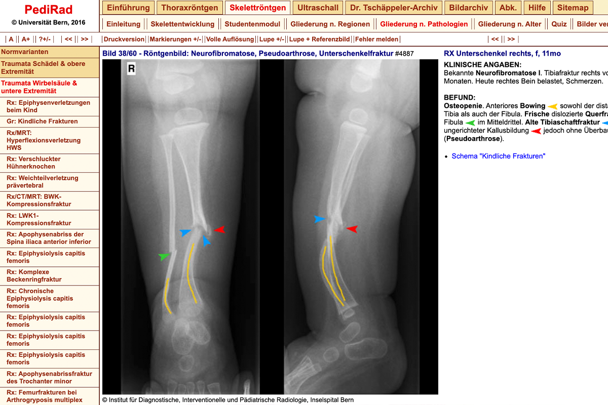 Example: PediRad (X-ray: neurofibromatosis, pseudarthrosis, tibia fracture) -